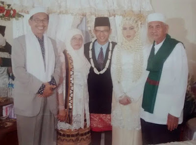 | Ust. Moraippa (kanan) ketiak menjadi wali nikah anak angkatnya Julkifli Marbun (tengah) |